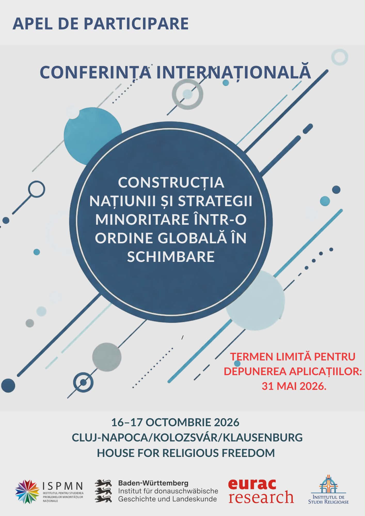 Lucrările conferinței se vor desfășura în limbile română și engleză. Propunerile vor fi trimise la adresa de e-mail: confispmn@gmail.com până la data de 31 mai 2026.